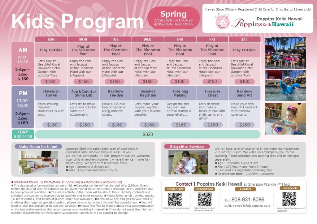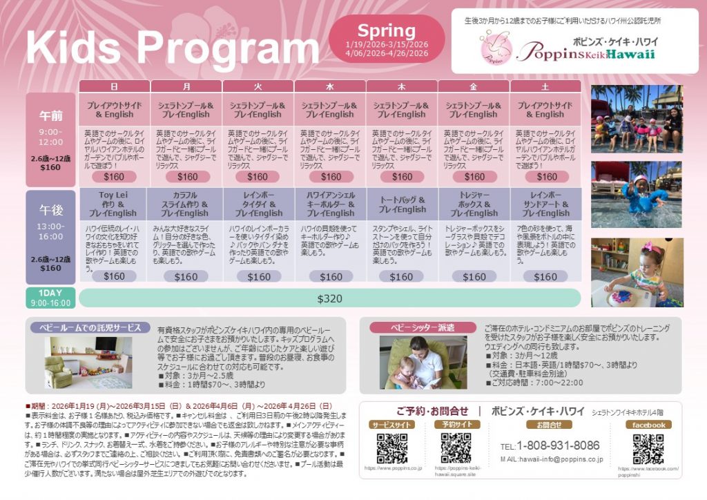 2026/1/19(月)- 3/15(日)、4/6(月)- 26(日)のSpring Program ~スプリング プログラム~ ご予約受付中です!