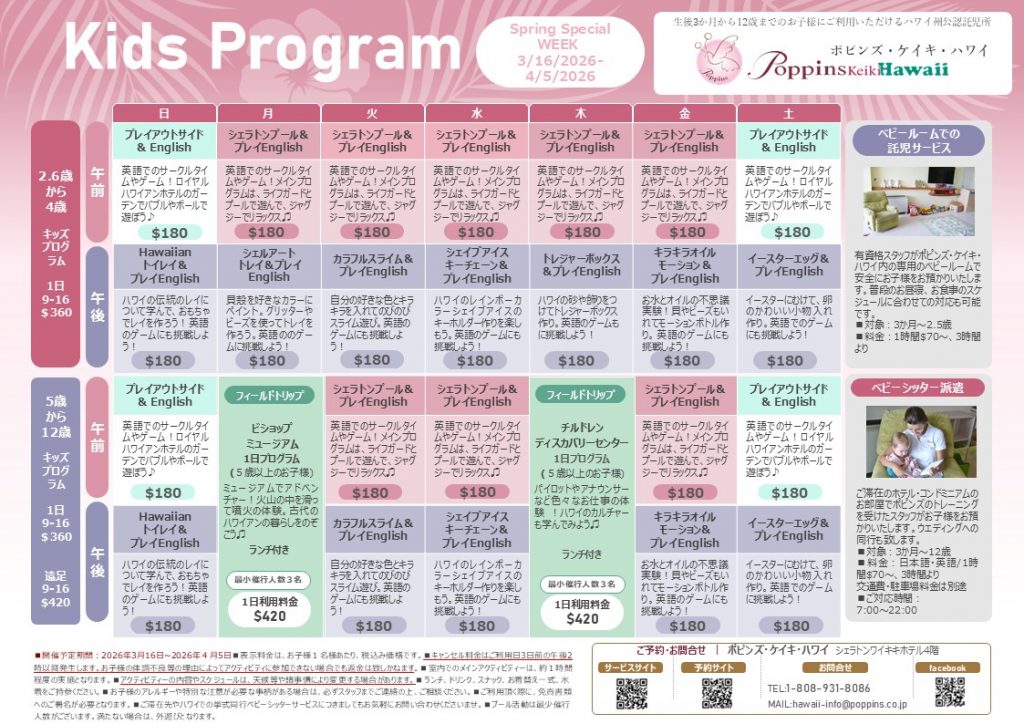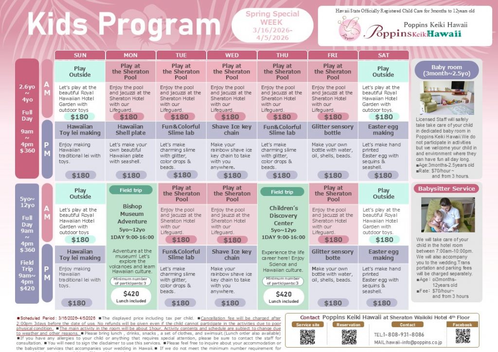 大変お待たせいたしました! 3/16(月)- 4/5(日)のSpring Special WEEK Program ~春休み スペシャルウィークプログラム~ ご予約受付中です!