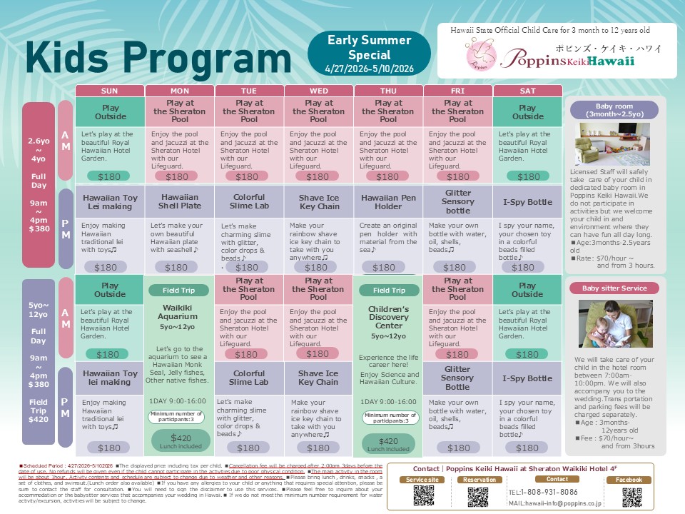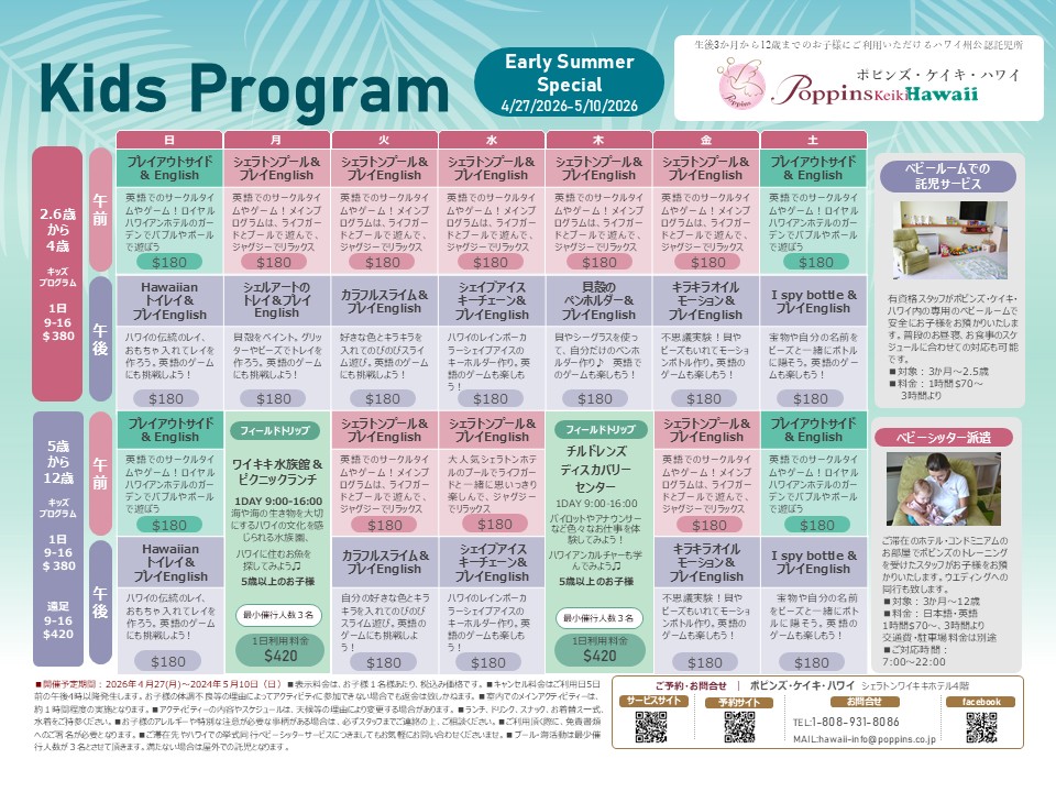 大変お待たせいたしました! 4/27(月)- 5/10(日)のGW Special Program ~GWスペシャルプログラム~ ご予約受付中です!