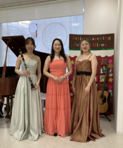 本コンサートは、3人の卓越した音楽家、ピアニストのShowko先生、ソプラノ歌手Natsuko先生、クラリネット奏者のAkiko先生が演奏してくださいました🎵
