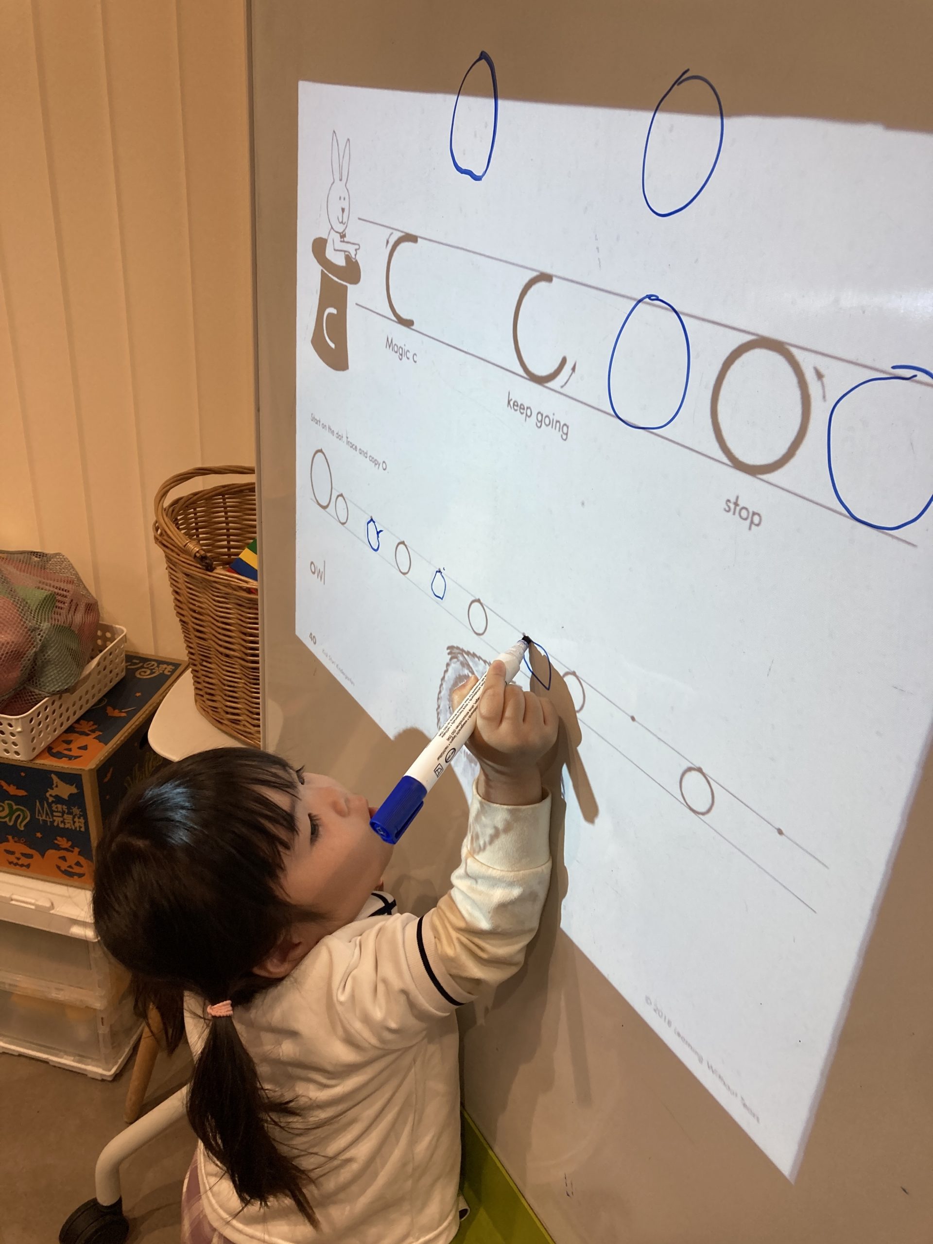 さらに学習が進むと、小文字を書く際に特に重要な”Magic C letters(マジックCレターズ)”に取り組みます。