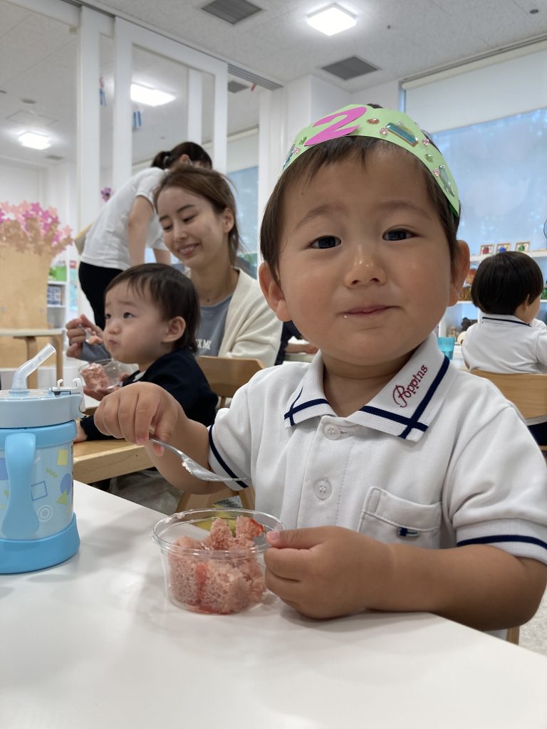毎月、特別なケーキが食べられるお誕生日会はみんなの大好きなイベントでもあります♪