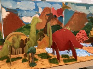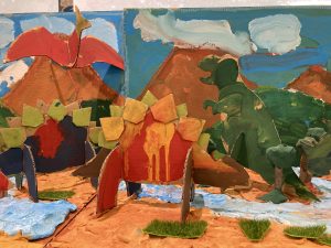 ジュラ紀の世界をみんなで表現しました。