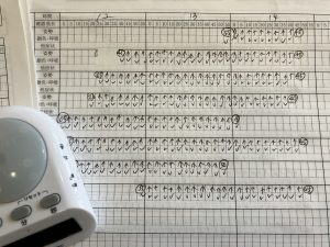 3、以上を、睡眠チェック表と光るタイマーを用いて5分ごとに記入を行う。