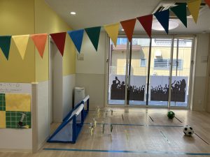 ボールを蹴りピンをたくさん倒して楽しみました。