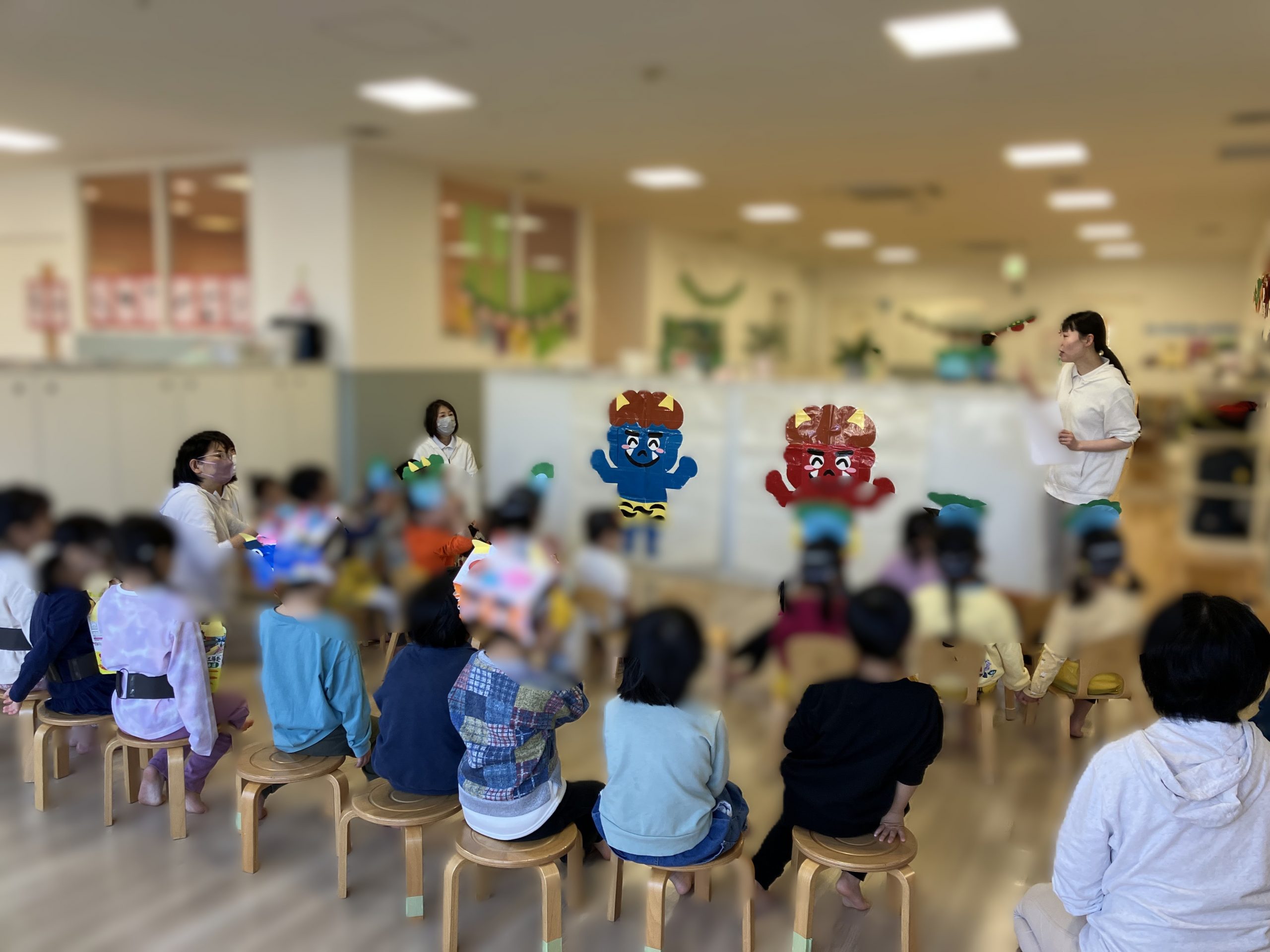 その後、お子様たちは自分で作った個性豊かな鬼のお面や、