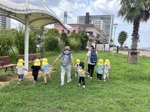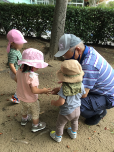 スノードロップクラス(0歳児)と プリムローズクラス(1歳児)は、 公園でどんぐり拾いを楽しみました。