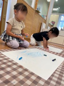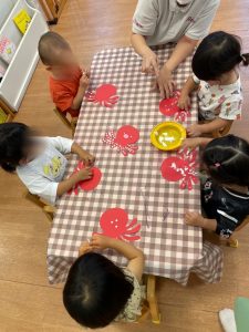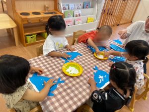 プリムローズ組(1歳児クラス)では海を題材に 制作活動を行いました。