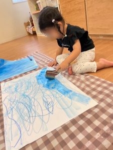 絵の具の感触が苦手だったお子様も 今回の制作活動を通して少しずつ慣れていき、 わくわくした表情で制作をする姿が見られました✨