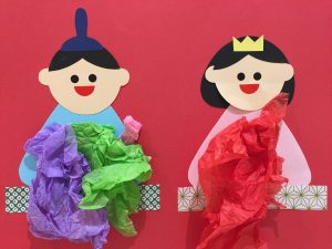 0歳児さん、1歳児さんの それぞれのひな人形を会の中で発表してもらいました。