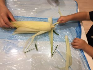 皮付きのとうもろこしを用意し、
