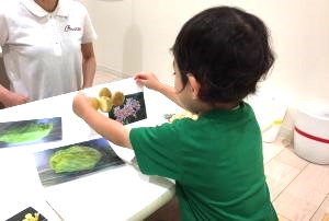食育の後の昼食では、 かるたで出てきた野菜を探す姿が見られ、 早速活動で学んだことを生かしていました!