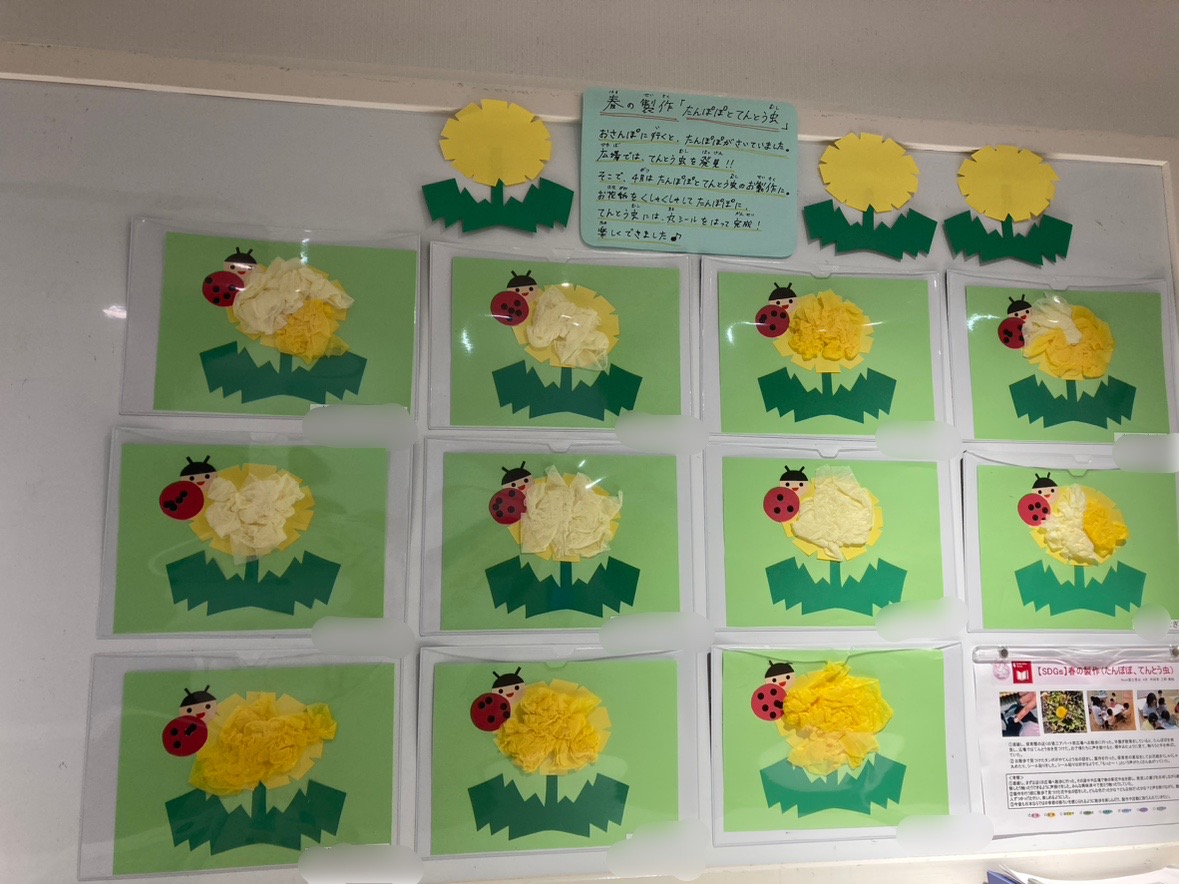 お花紙をくしゃくしゃにしてたんぽぽに。