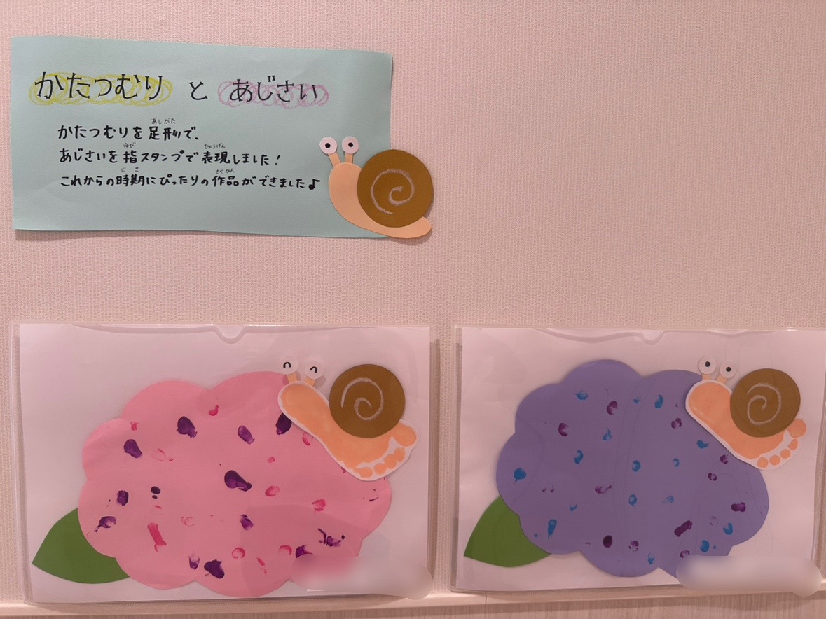 0歳児クラス(スノードロップ)は、「かたつむりと紫陽花」です🌸