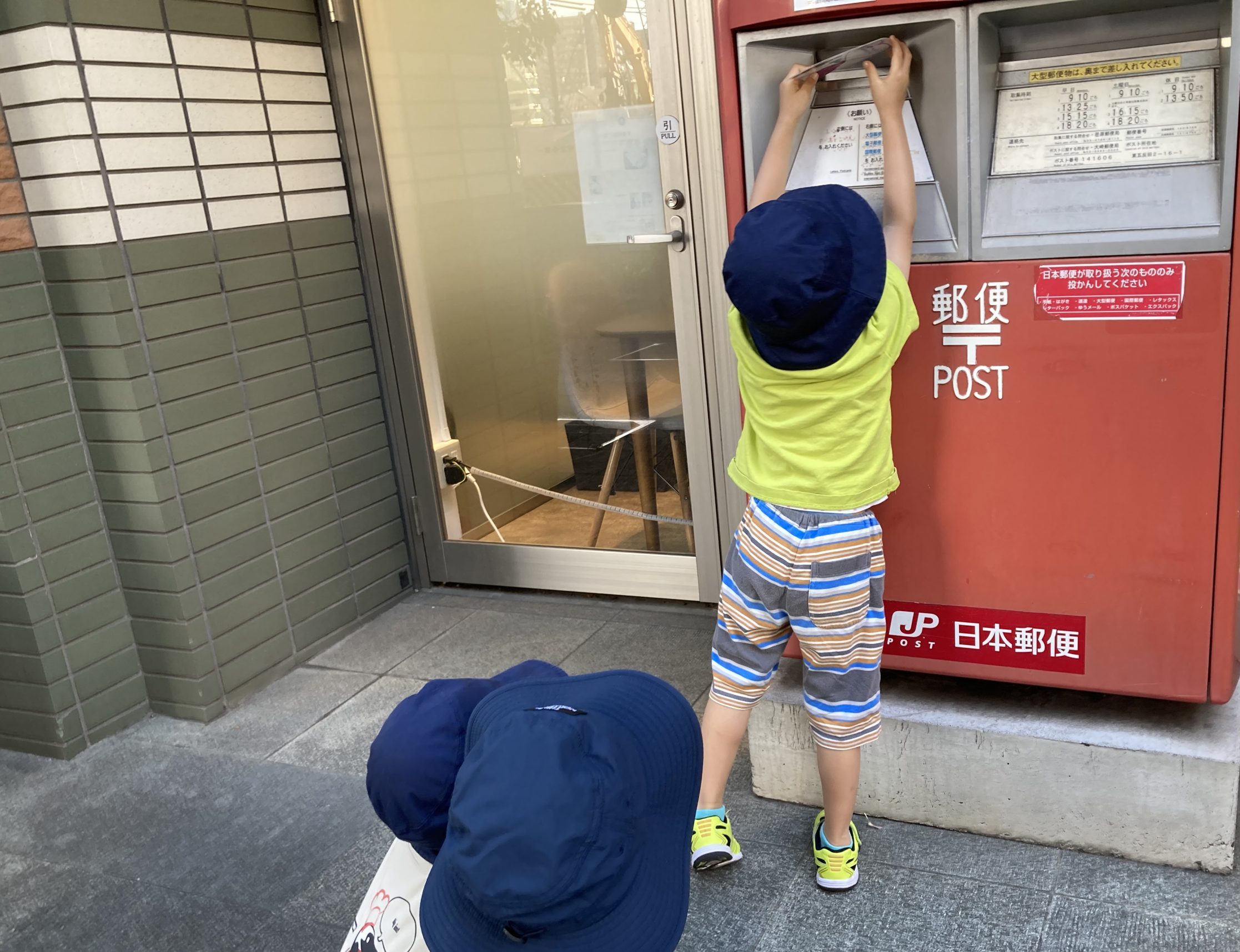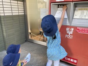 心を込めて作った素敵な葉書を、 みんなでポストへ投函しに行きました。