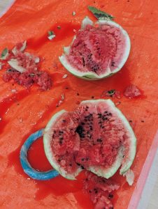 みんなで協力して、 割ることができたスイカを 午後のおやつで 美味しく召し上がっています🍉😊