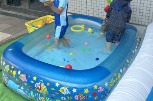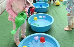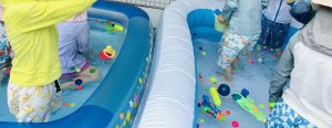 水鉄砲やスーパーボールを使ったりと 水の気持ち良さを味わいながら、 夏の遊びを思いきり楽しむお子様たちです😊
