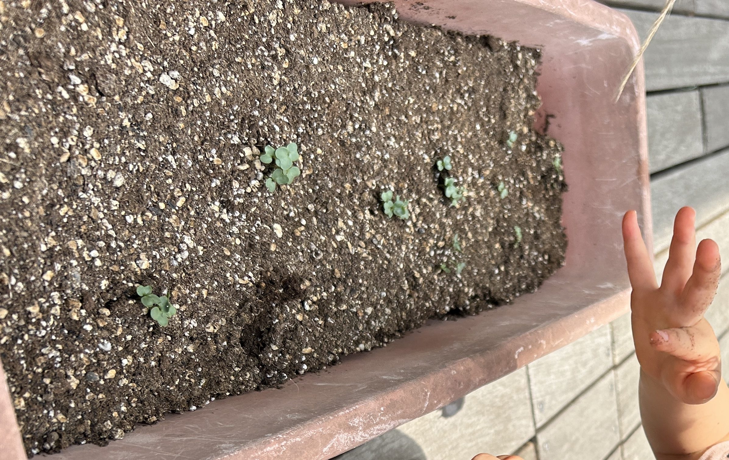 芽が出て、日々変化する様子を観察するなかで、様々な気付きや発見を楽しむお子様たちです😊