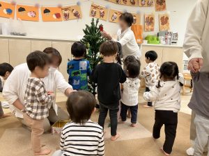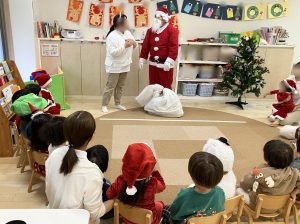 サンタさんに驚くお友だちや喜ぶお友だち、