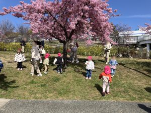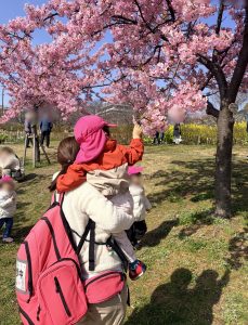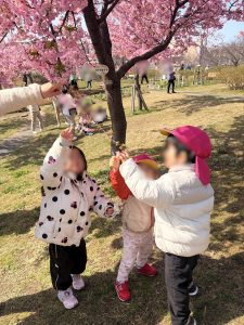 抱っこで桜を観察したりしていました。