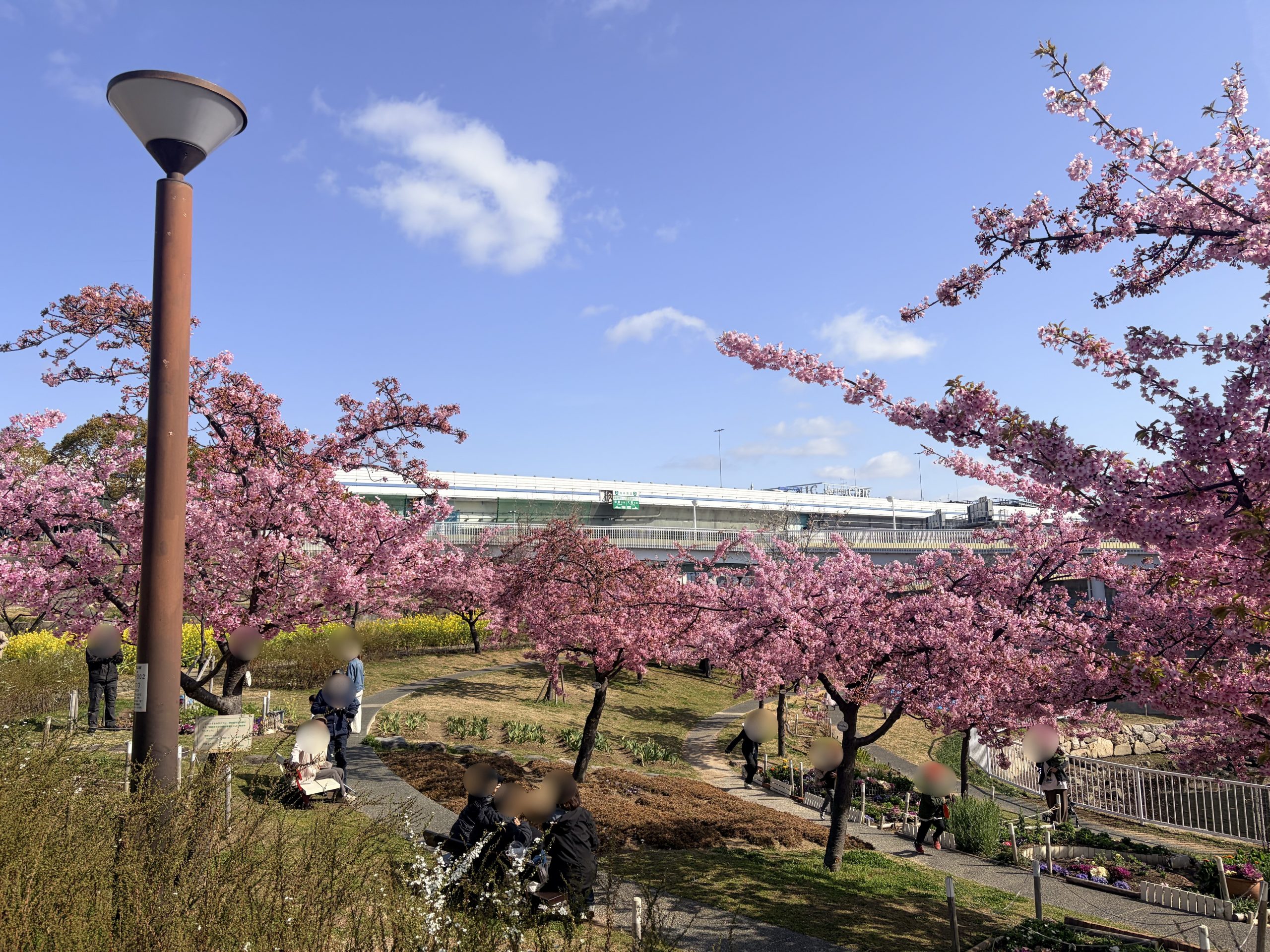 公園に到着すると、桜が見えて