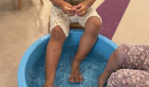 靴下を脱いで、ズボンをお膝まで捲って準備万端♪