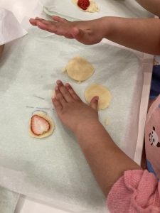 いちごをのせられるように、丸くて平べったい形にしていきます。