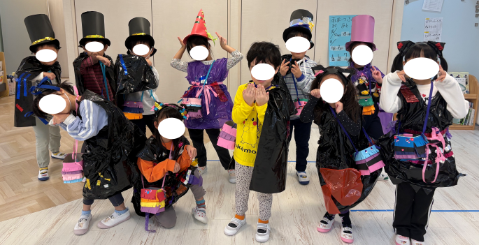 ポピンズナーサリースクール平沼橋では ハロウィーンに向けてお菓子を入れるバッグと 仮装衣装の制作を行いました。