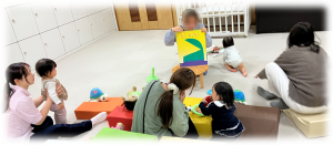 お姉さんたちと一緒に 動物の真似っこをして遊んだり、紙芝居、 おもちゃのチャチャチャの曲に合わせて鈴の合奏をしたりと 盛りだくさん!あっという間の30分でした🎵