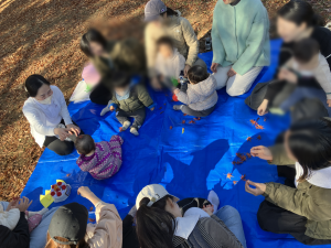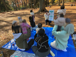ひらひらと落ち葉が舞う中、1歳のお祝いをしました。