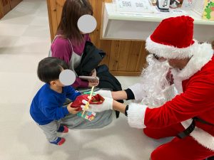 初めて見るサンタさんに少し驚いている子や嬉しそうにするお子様の姿が見られました。