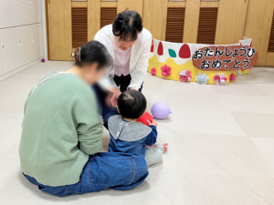 みなさんの温かな拍手や歌に少しびっくりした表情のお子様も(^^)