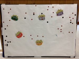 豆に見立てたシールで鬼退治ごっこを楽しみました。