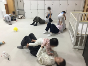 小さなお子様とぎゅーっとスキンシップを取りながら、