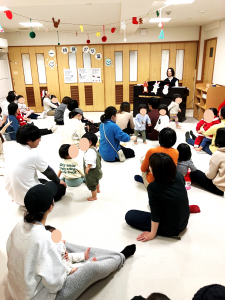 歌に合わせて簡単なリトミックをしたり、