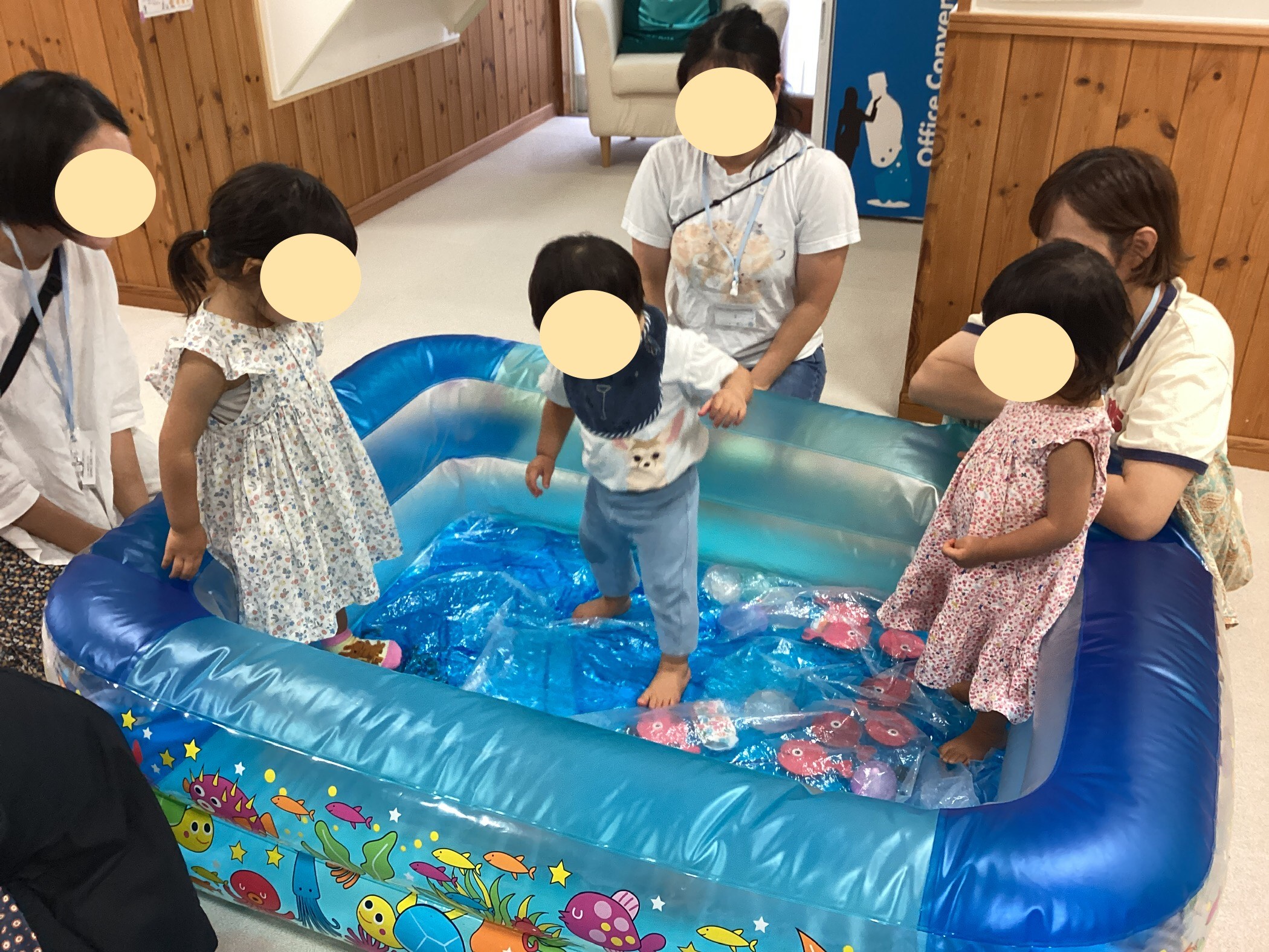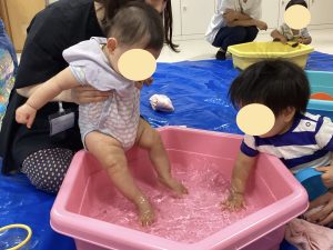 夢中になってマットのなかの「きんぎょ」を指差ししてみたり、足踏みして水の感触を楽しむ姿もありました✨