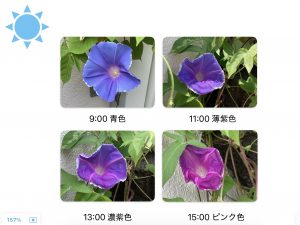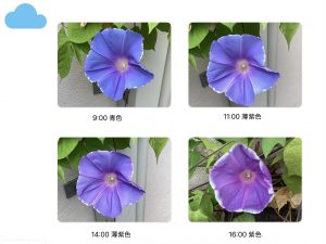 花の色は時間・天候・品種によって変化する朝顔がある