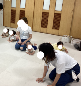 始まるとハイハイをして前まで来て、一緒に楽しんでくれました。