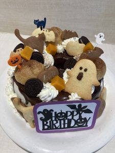 毎月、栄養士が素敵なケーキを作ってくれます。今月はおばけのケーキ👻