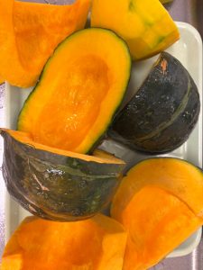 給食でかぼちゃを食べたり