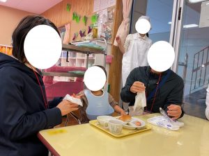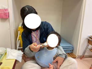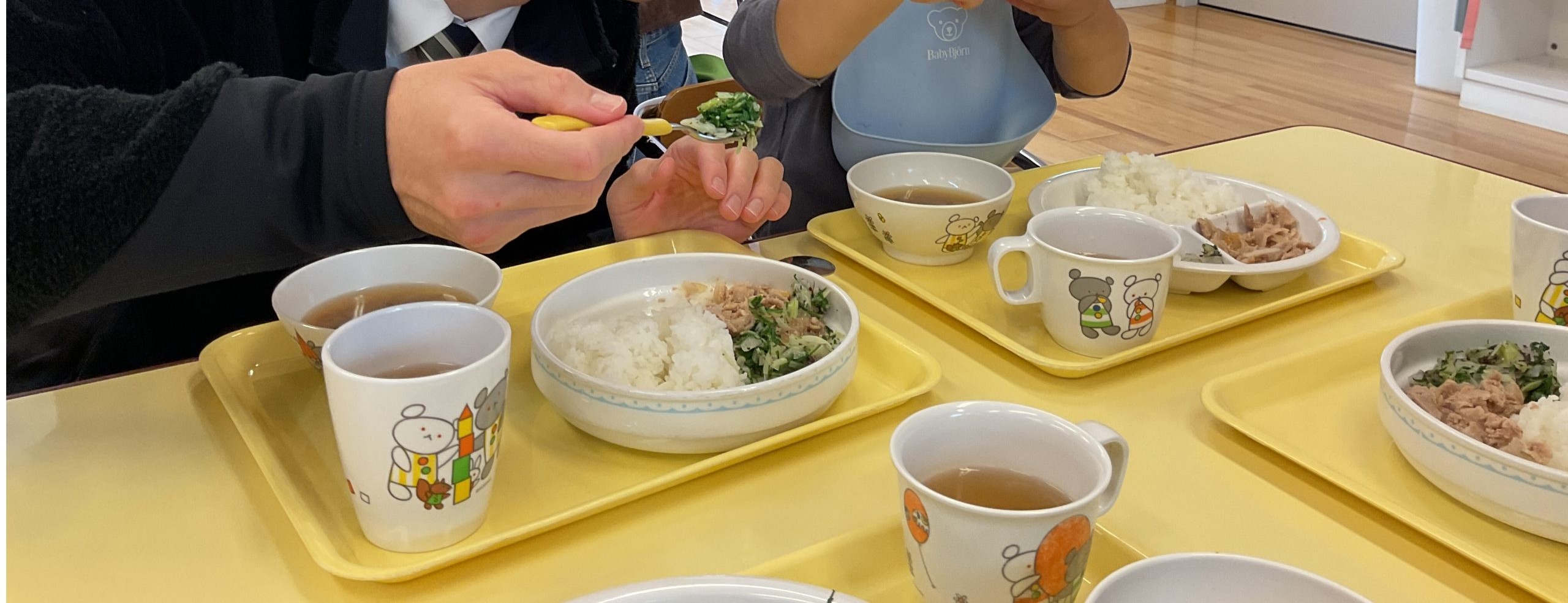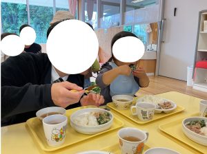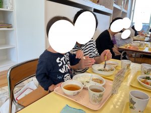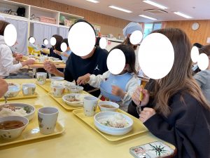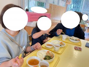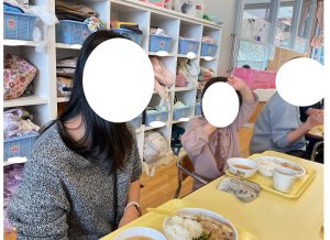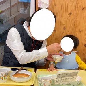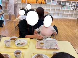給食の時間に保護者様の姿が見え、驚くお子様たち!