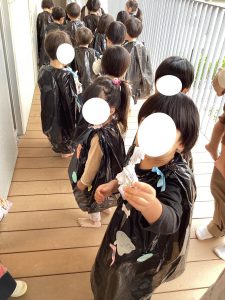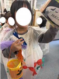 ビニールで作った仮装も上手にできていました👏