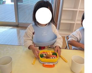 保護者様が作ってくださったお弁当を美味しくいただき、