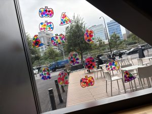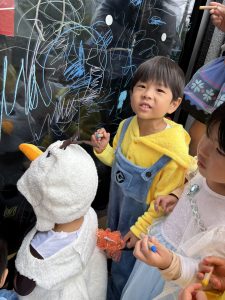 ハロウィンの制作物を窓に飾りつけしました🎀