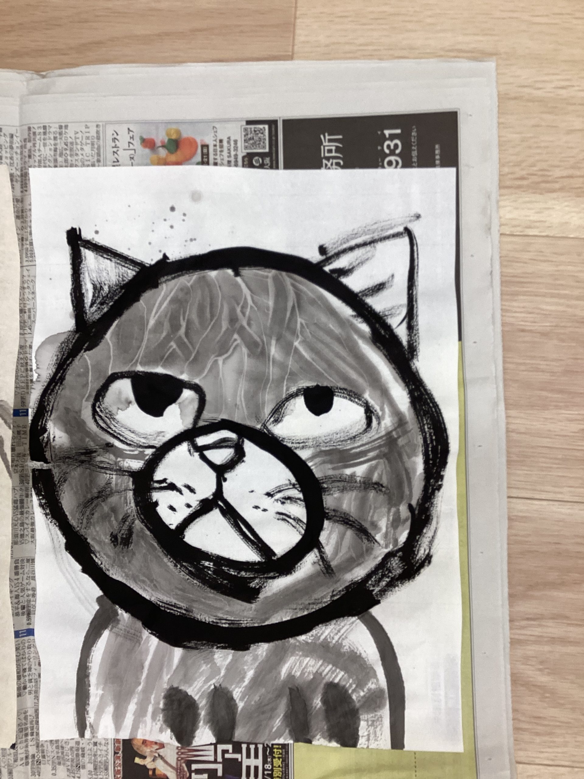 まず半紙1枚目の猫が現れました。