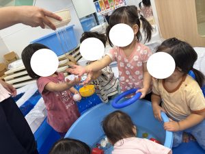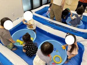 8月中、乳児クラスで「水を使った活動」を行いました!