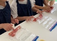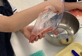 いちごを袋に入れて、小さく潰していく作業からスタート。