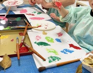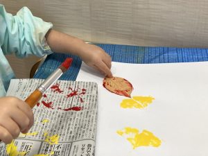 葉っぱに絵の具を塗るのはちょっぴり難しかったけど、