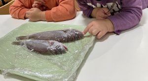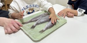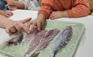 お魚の部位を見たり、触れたりしてみましたよ。