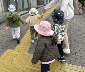 お友だちとしっかり手をつないで、いざ出発です!